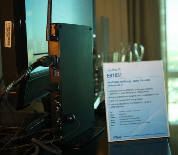 Помимо анонса трех нетбуков на базе новой платформы Cedar Trail, компания ASUSпредставила новый неттоп Eee Box EB1031 на той же платформе. Новинка, показанная на выставке CES 2012, работает на базе процессора Atom D2700 с частотой 2.13ГГц.