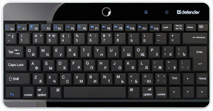 Благодаря компактному тонкому корпусу (24,2х12,5х0,7 см) клавиатура не займет много места в сумке, а благодаря малому весу (150 г) – не утяжелит ее. Несмотря на уменьшенный профиль, Defender I-Type SB-905 предлагает полноценную QWERTY-раскладку с большой клавишей Enter и полноразмерным «пробелом». Верхний ряд F-клавиш обеспечивает быстрый доступ к различным важным функциям планшета: с их помощью можно управлять воспроизведением мультимедиа, открывать важные приложения и так далее. В рабочем режиме эти клавиши подсвечиваются мягким синим цветом.